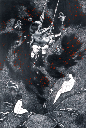 pencil and acrylic on gesso, mounted on canvas